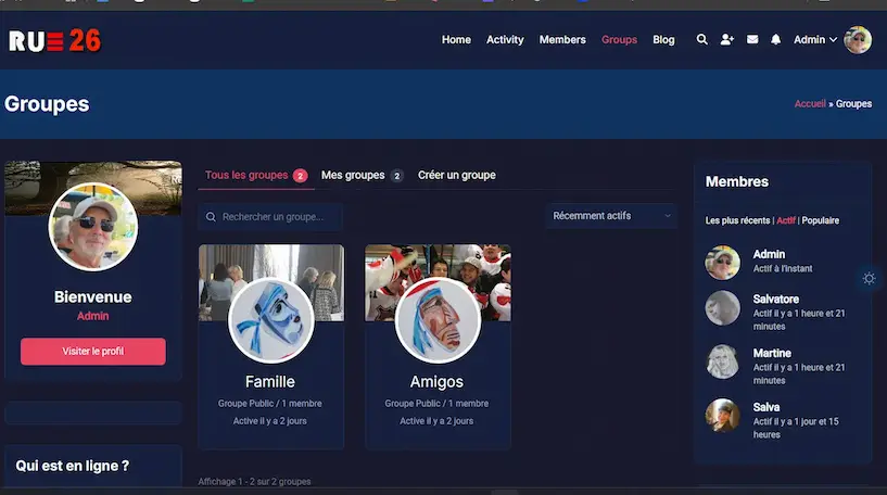 Rue26 est un réseau social sans but commercial, il sert à partager les relations entre la famille et les amis.